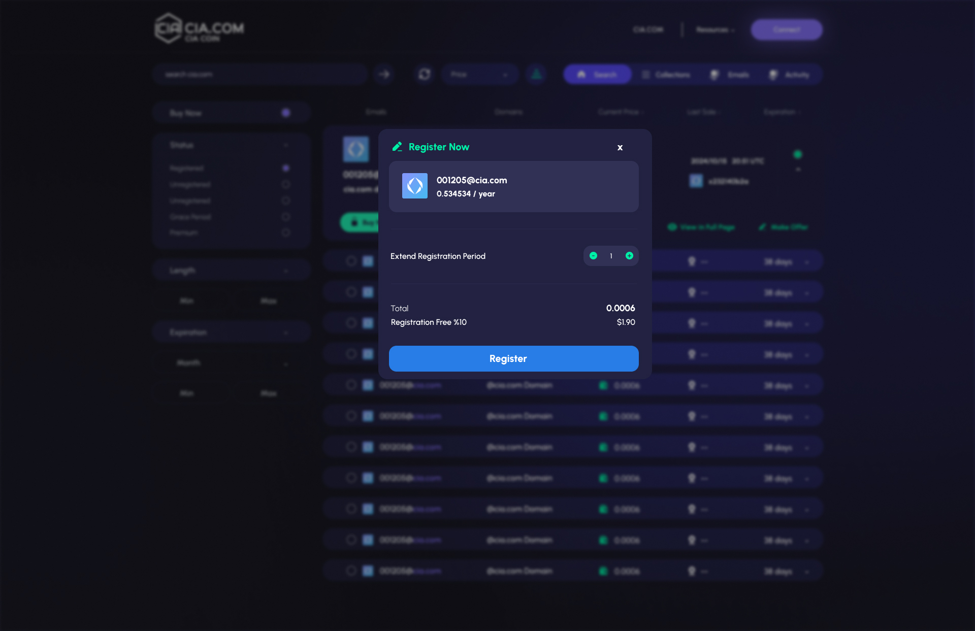By following these steps, you can register your desired Web3 email on the CIA.com Web3 Email Marketplace and take full advantage of our platform’s features.